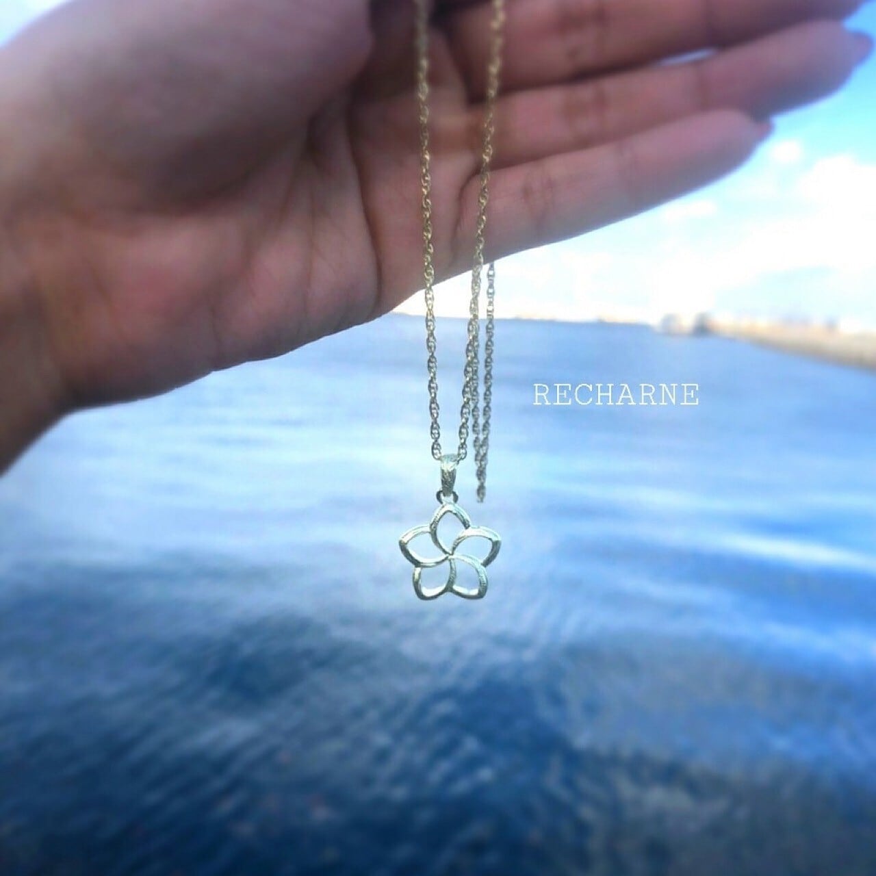 RECHARNE✕LIFEisコラボモデル Plumeria necklace 24K・ピンク・グリーンゴールドコーティング